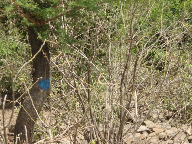 After long discussion with the community finally the new boundary has been defined and agreed. As you may see in the picture the blue paint on the tree shows the new boundary mark of the church forest. The new boundary actually is almost what we draw last time with you here (a little bit pushed outward). I am happy to tell that the new boundary is positively recognized and accepted by the local residents, church leaders and local government officials.